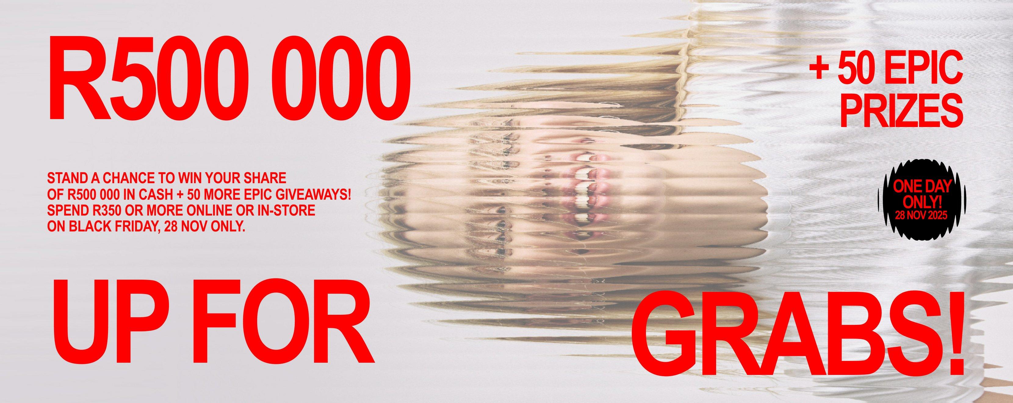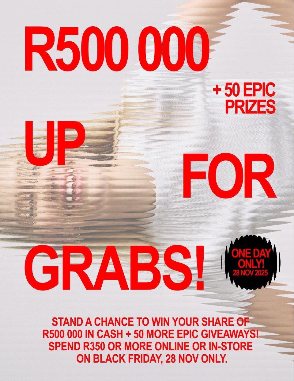 TODAY ONLY, SPEND R350 OR MORE IN-STORE OR ONLINE AND STAND A CHANCE TO WIN YOUR SHARE. Ts & Cs APPLY.