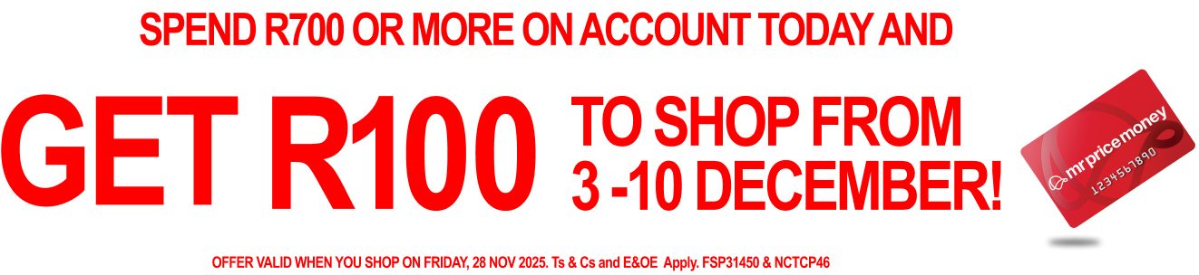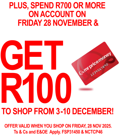 Black Friday is an all-week kind of thing, with amazing offers across ladies’, men’s, kids’ and babies’ fashion — online only from 24–27 November 2025. The main event on 28 November 2025 comes with the year’s most anticipated deals, in-store and online. We’re also dropping major cellular offers. Plus, we never get tired of bringing you epic savings, so look out for our online-only Cyber offers. It doesn’t end there, you can also stand a chance to WIN big when you spend R350 or more online or in-store this Black Friday, 28 November 2025.