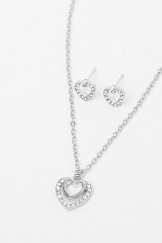 Adorned in diamantes, this elegant heart set features gorgeous stud earrings to match its diamante and gem necklace.